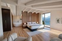 Erster Stock: 3 Schlafzimmer, Badezimmer, Arbeitszimmer und Terrasse mit Seeblick.